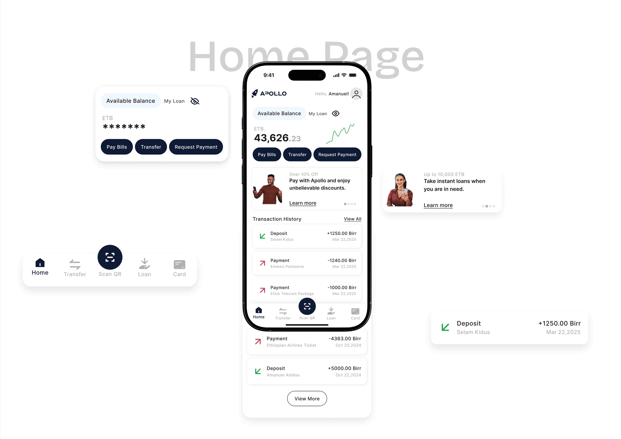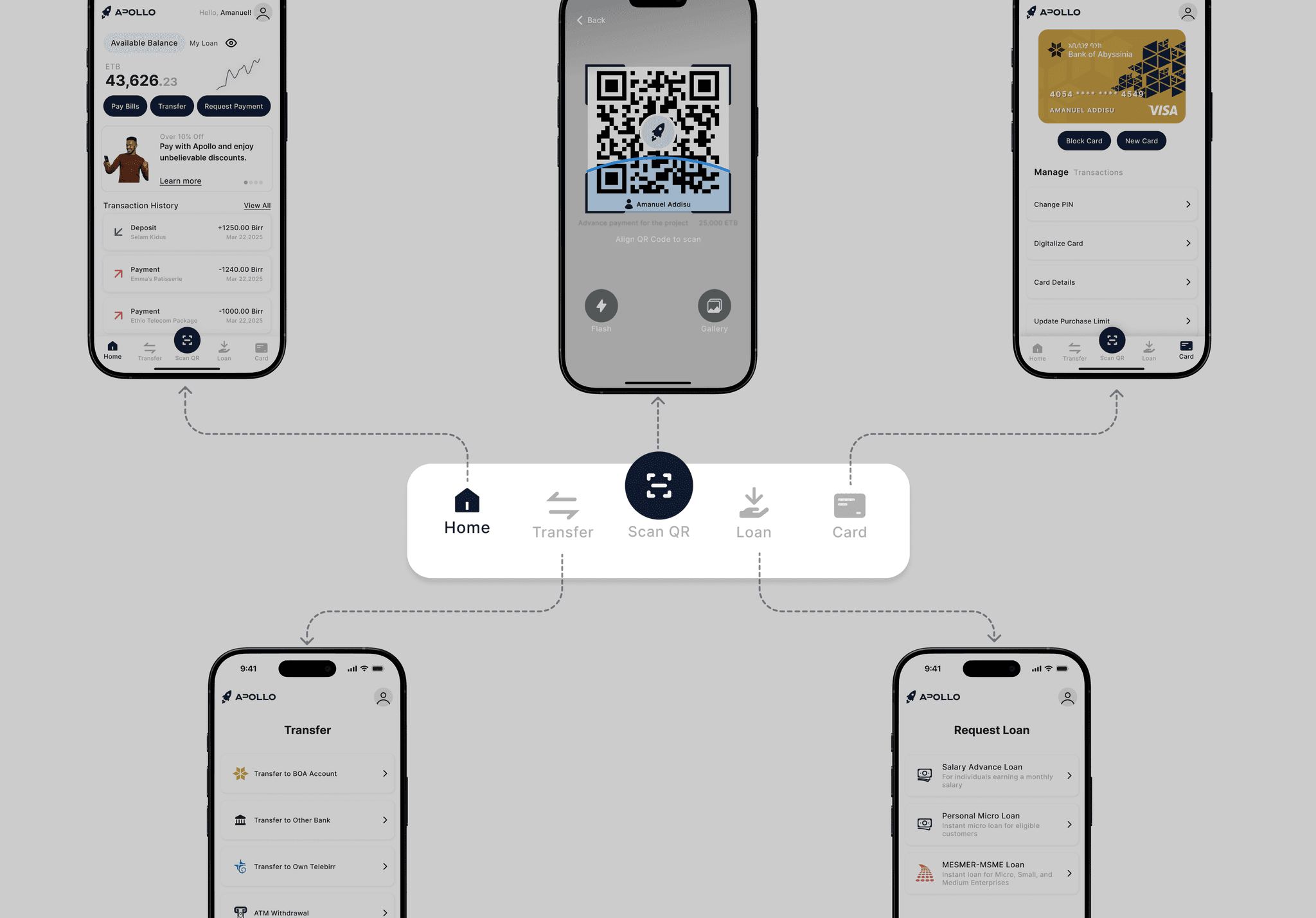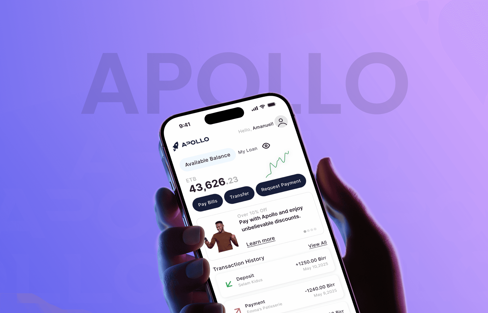 Apollo is a mobile banking app serving users across Ethiopia. Despite its essential features, it suffered from confusing navigation and poor trust, driving low app ratings and high customer support demand.