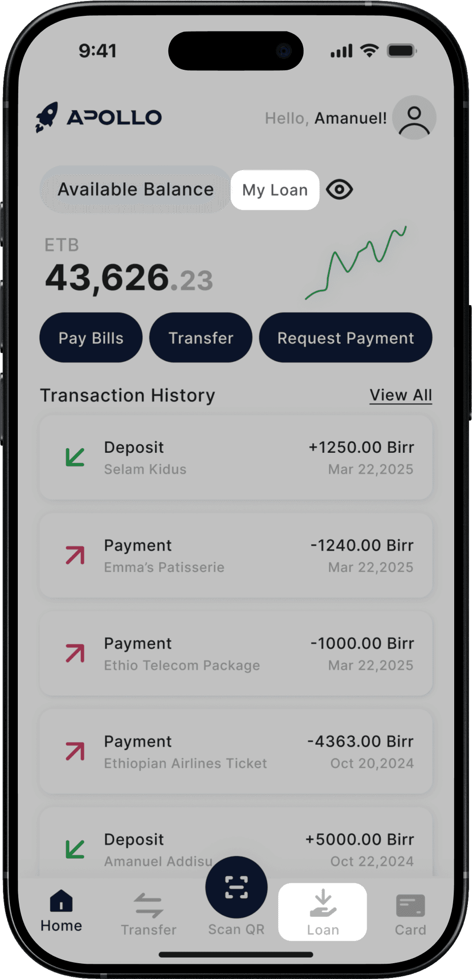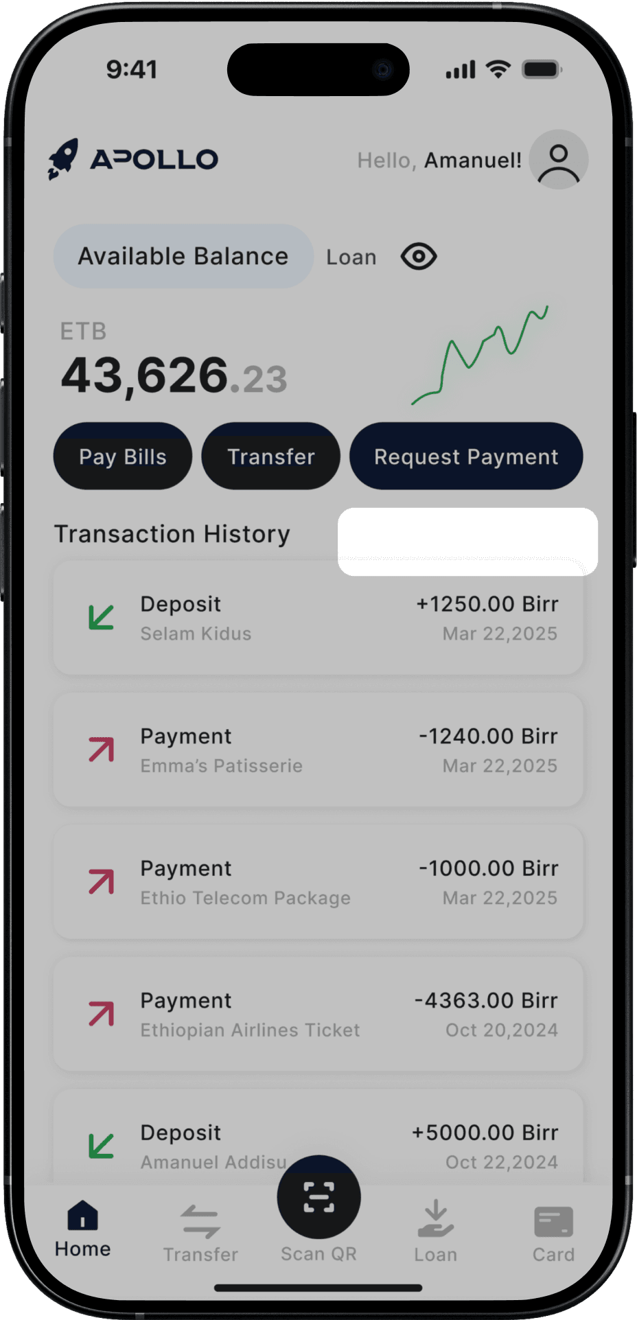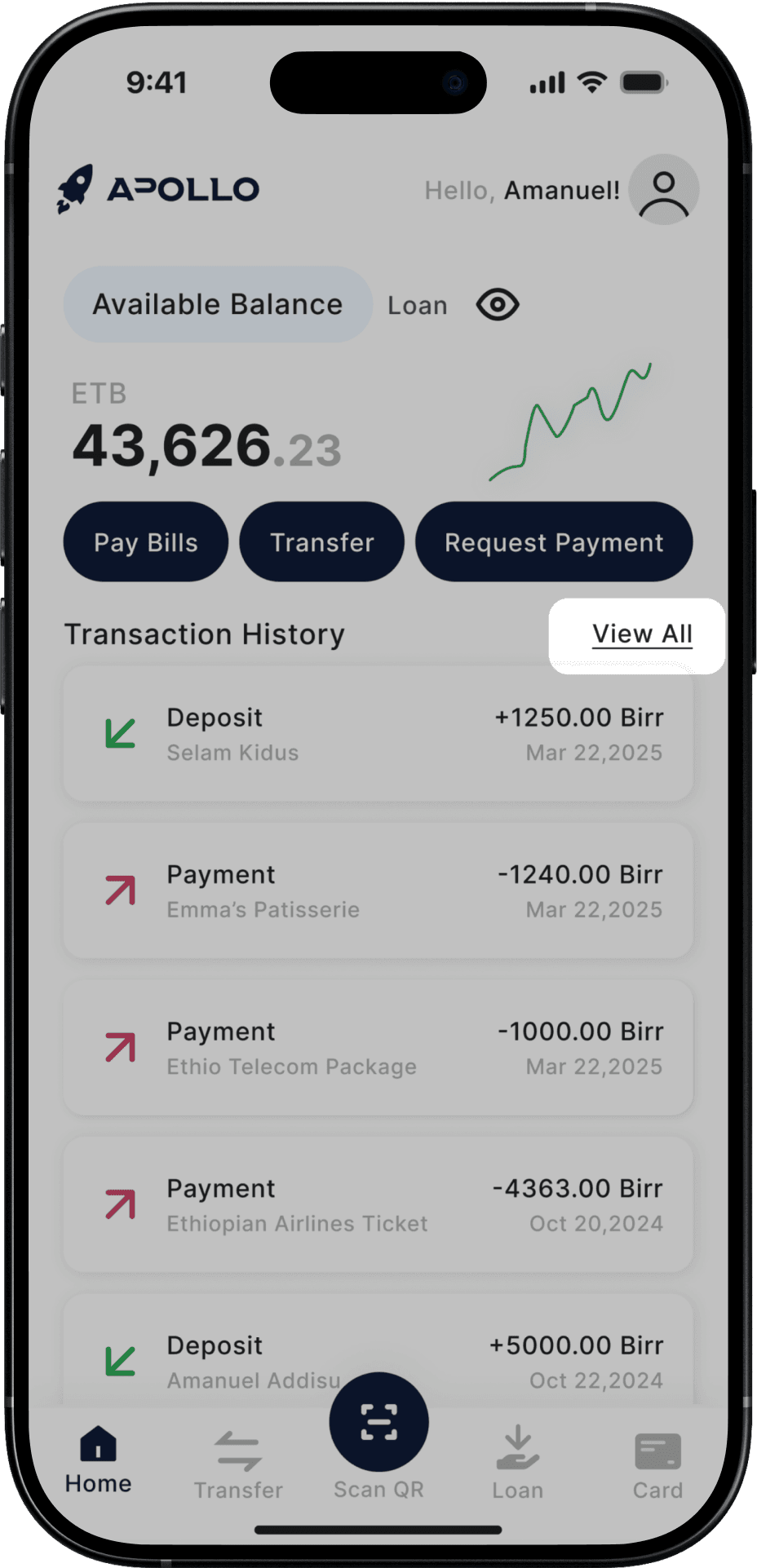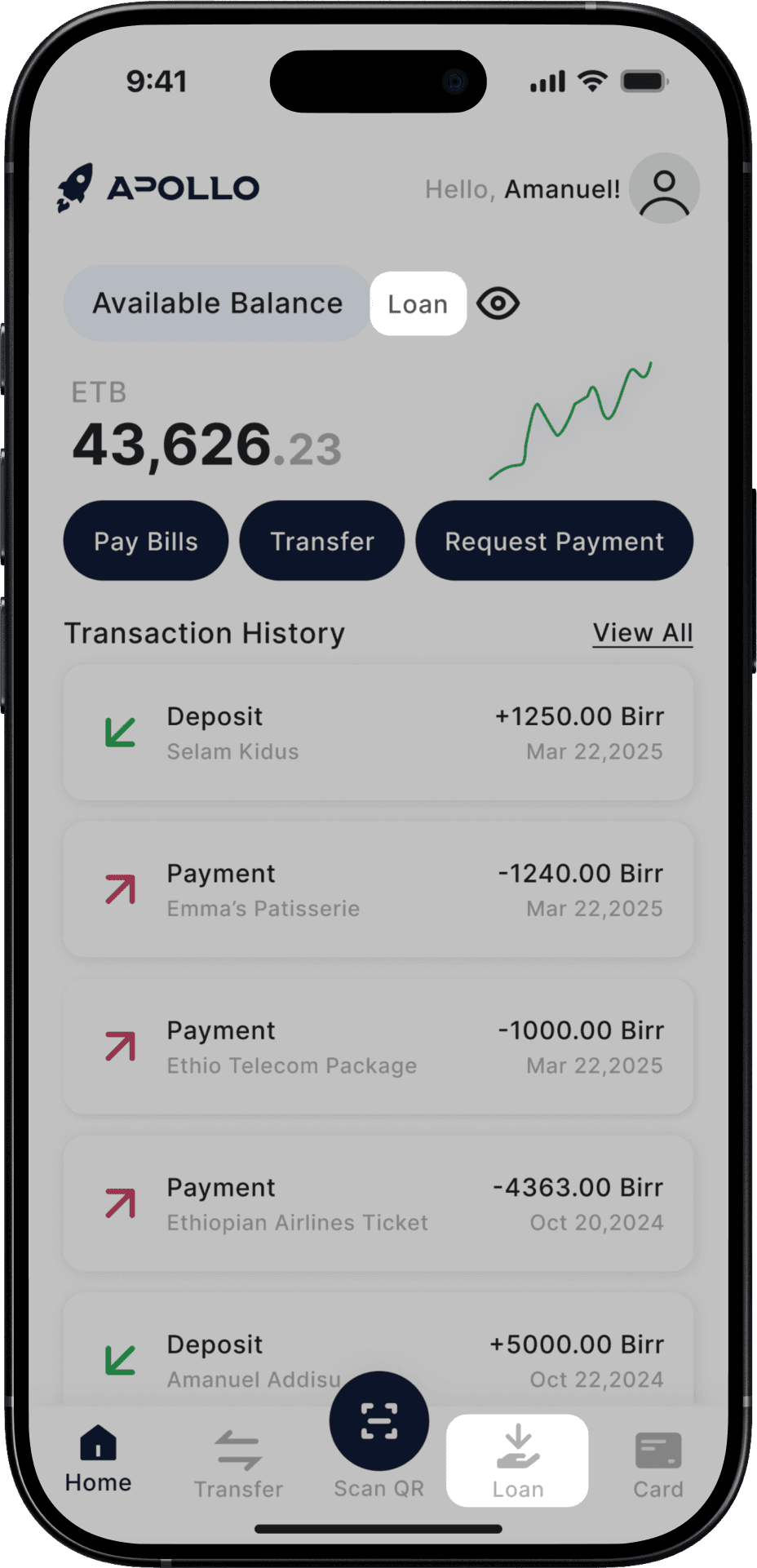 Apollo is a mobile banking app serving users across Ethiopia. Despite its essential features, it suffered from confusing navigation and poor trust, driving low app ratings and high customer support demand.